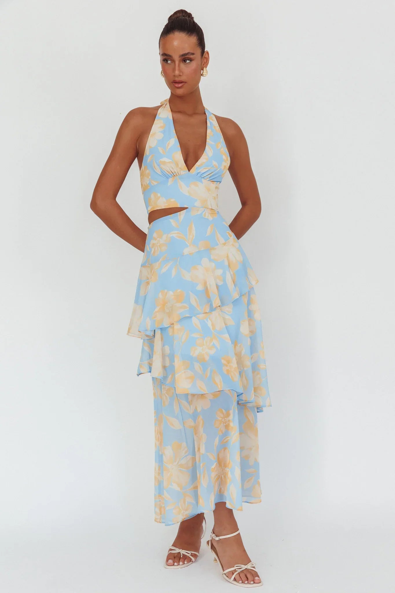 We've fallen head over heels for our dreamy Aura Points dress. Featuring the prettiest floral print and tiered ruffles in the skirt, you'll be flooded with compliments! Perfect for Summertime Sunday brunches with your fave girlies teamed with kitten heels to complete the look.