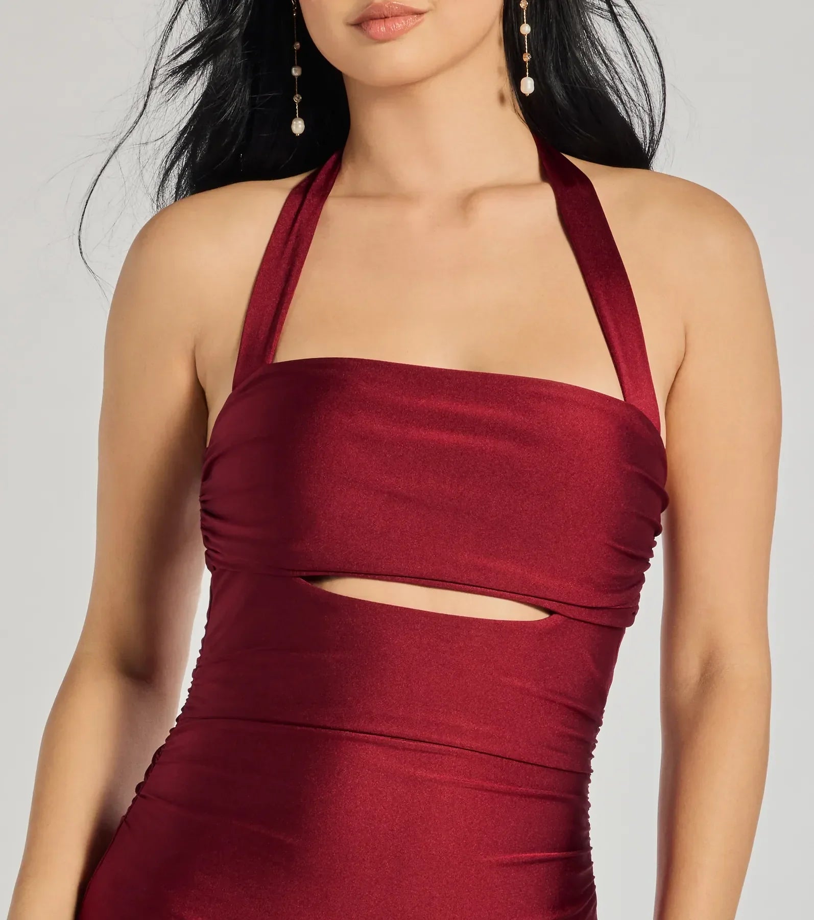 Showcase your cute side in this sleeveless mini dress featuring a halter square neckline, a flirty cutout bodice to show a peak of skin, and an A-line silhouette. Pair with earrings and heels.