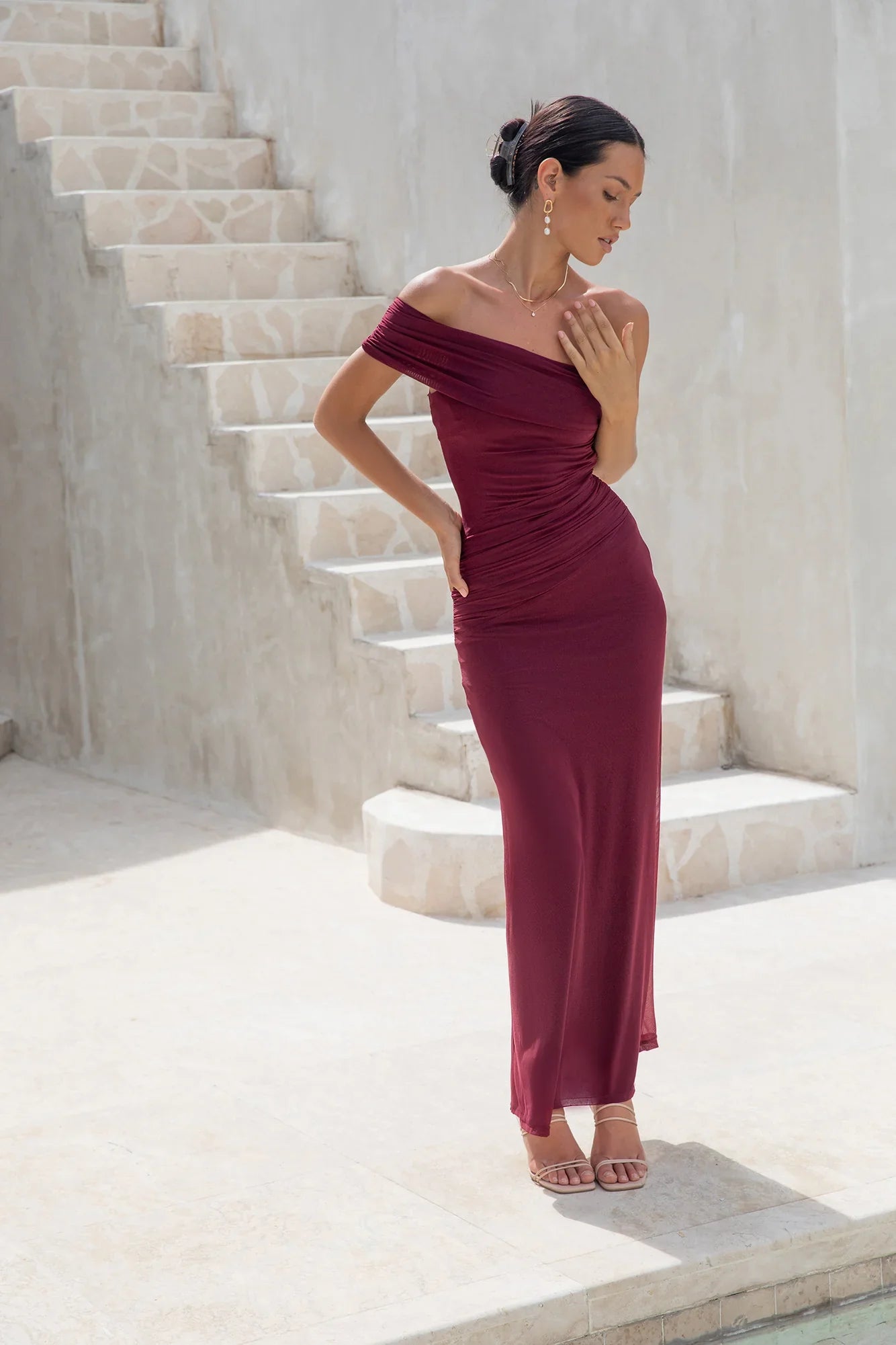 Make a statement in the Dahlia One Shoulder Mesh Maxi Dress. This enchanting dress features stretchy mesh fabric with a flowy skirt that moves effortlessly. The folded neckline adds an elegant touch, while the one-shoulder design brings a bold and modern vibe to your look. Perfect for any special occasion!