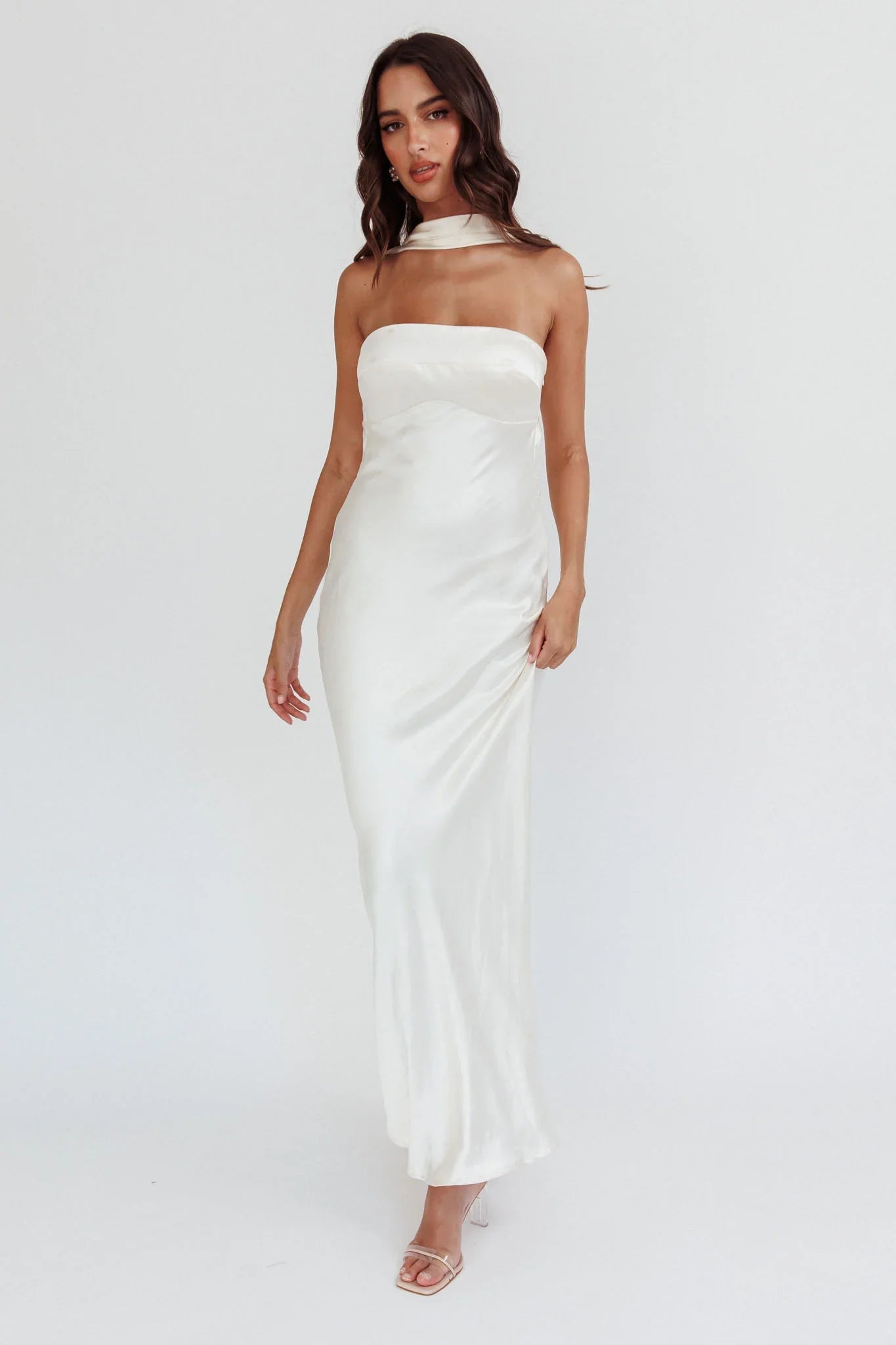 Make jaws drop in our gorgeous Damsel maxi dress. It features a low, draped back design and reverse halterneck. It's perfect for a wedding reception or special event. Team it with nude heels and a clutch for an unforgettable look.