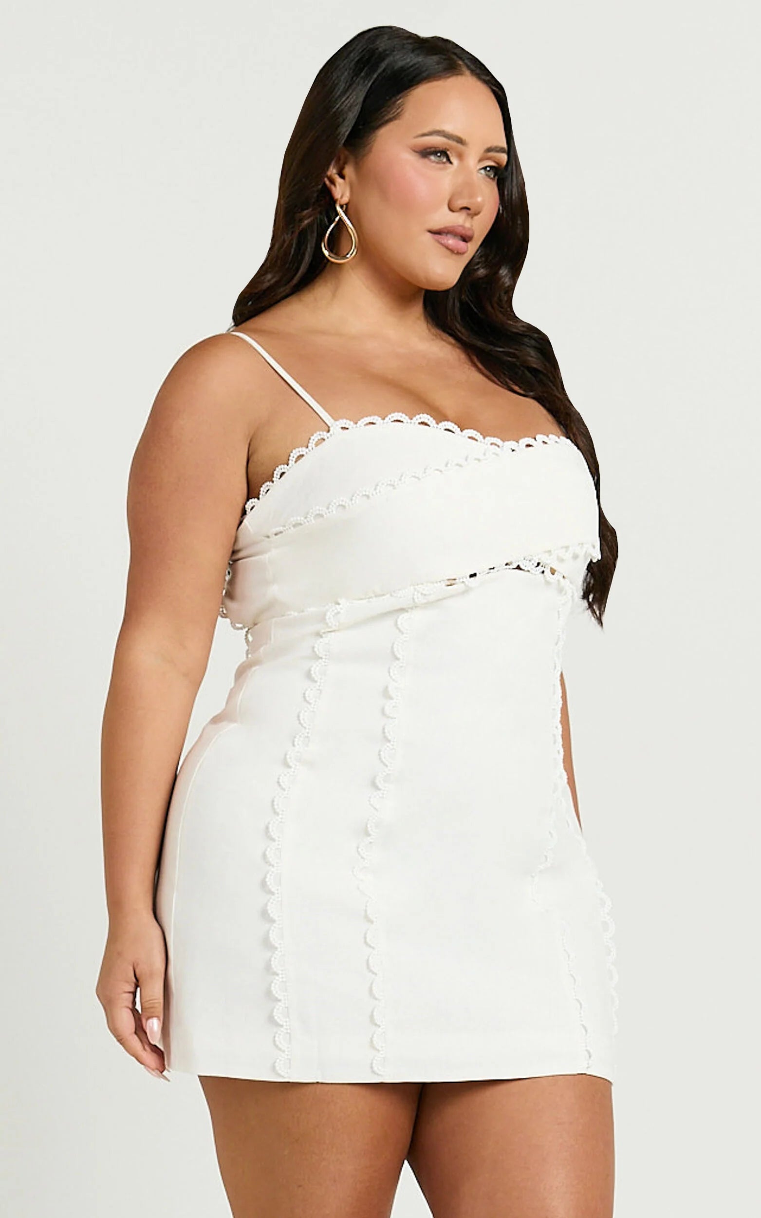 Description Elevate your style with our Gigi Mini Dress your new go-to piece that perfectly blends timeless elegance with playful charm. Embrace the effortless sophistication of off-white, a hue that promises to illuminate your wardrobe with a hint of purity and freshness. Specifically designed for the vibrant Gen Z and Millennials, this dress speaks the language of modern femininity with its sweetheart neckline, promising a flattering showcase of your inherent grace.