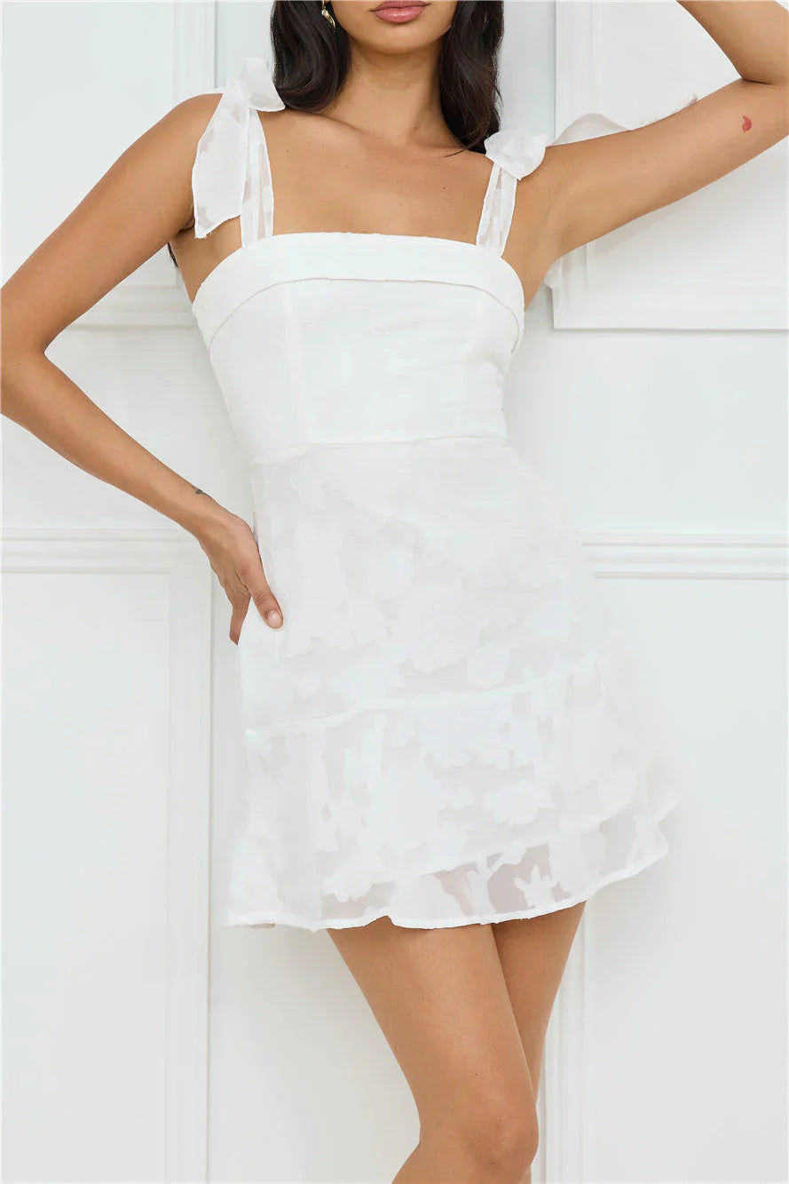 The Island Reverie Mini Dress is your go-to for fun and flirty vibes, featuring tie-up shoulder straps, a folded neckline, and a playful floral design, all with an elastic back and a flowy skirt that will have you twirling all day long! Style with sandals for that breezy, sun-kissed look!
