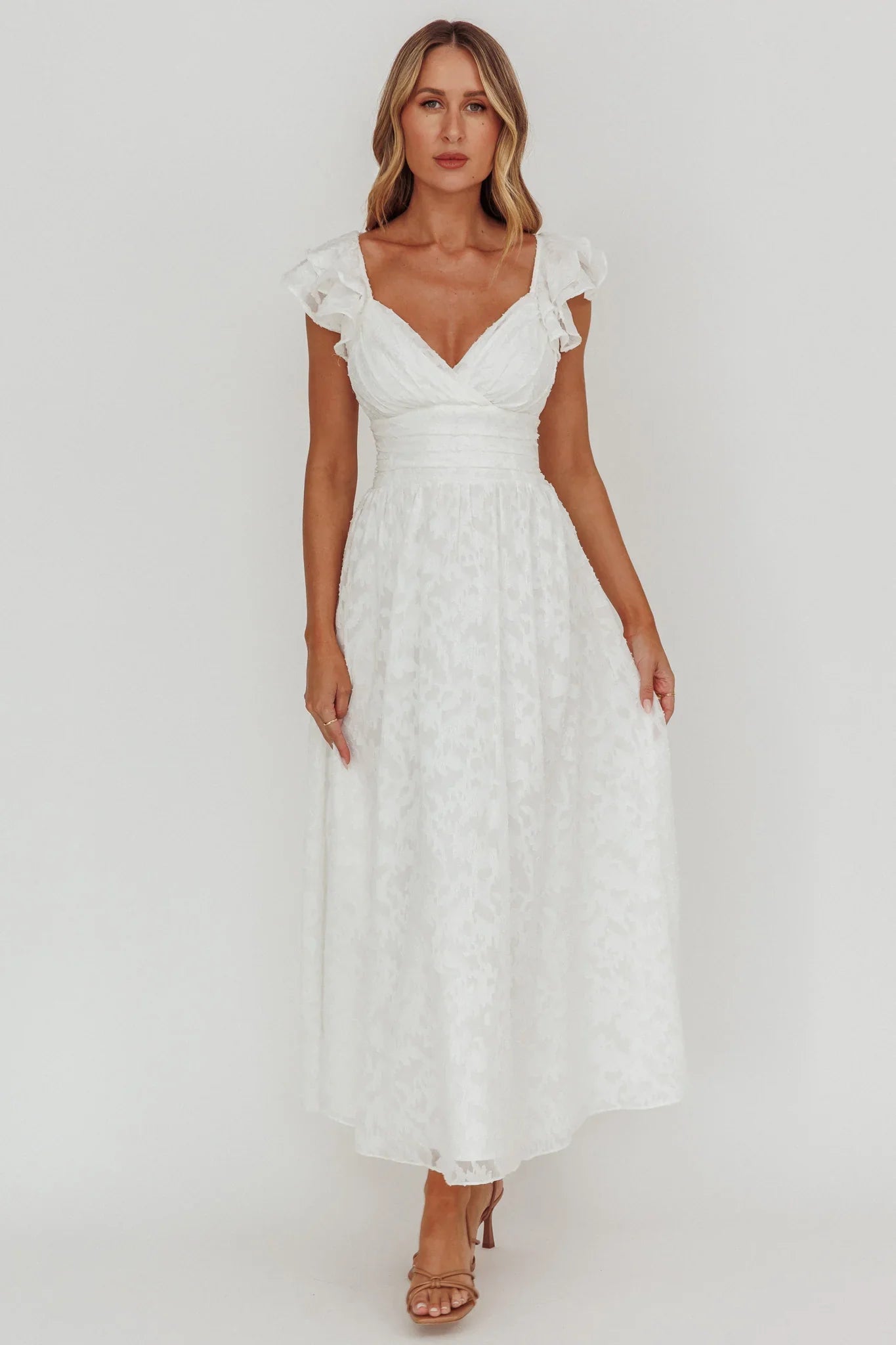 You'll be the belle of the ball in our gorgeous Lola dress. We are in love with the ruching detail throughout the bodice and its feminine, layered ruffle shoulders. Perfect for a special birthday celebration or a garden wedding teamed with kitten heels and a clutch. Cute!