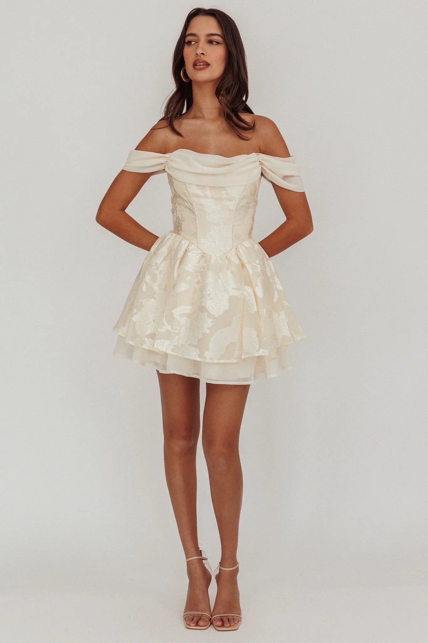 Embrace your inner royal with our Lusting mini dress. This dress redefines sophistication with its regal jacquard fabric and flattering off shoulder straps. Perfect for both day and evening wear, this dress effortlessly transitions from glamorous nights out to romantic dates.