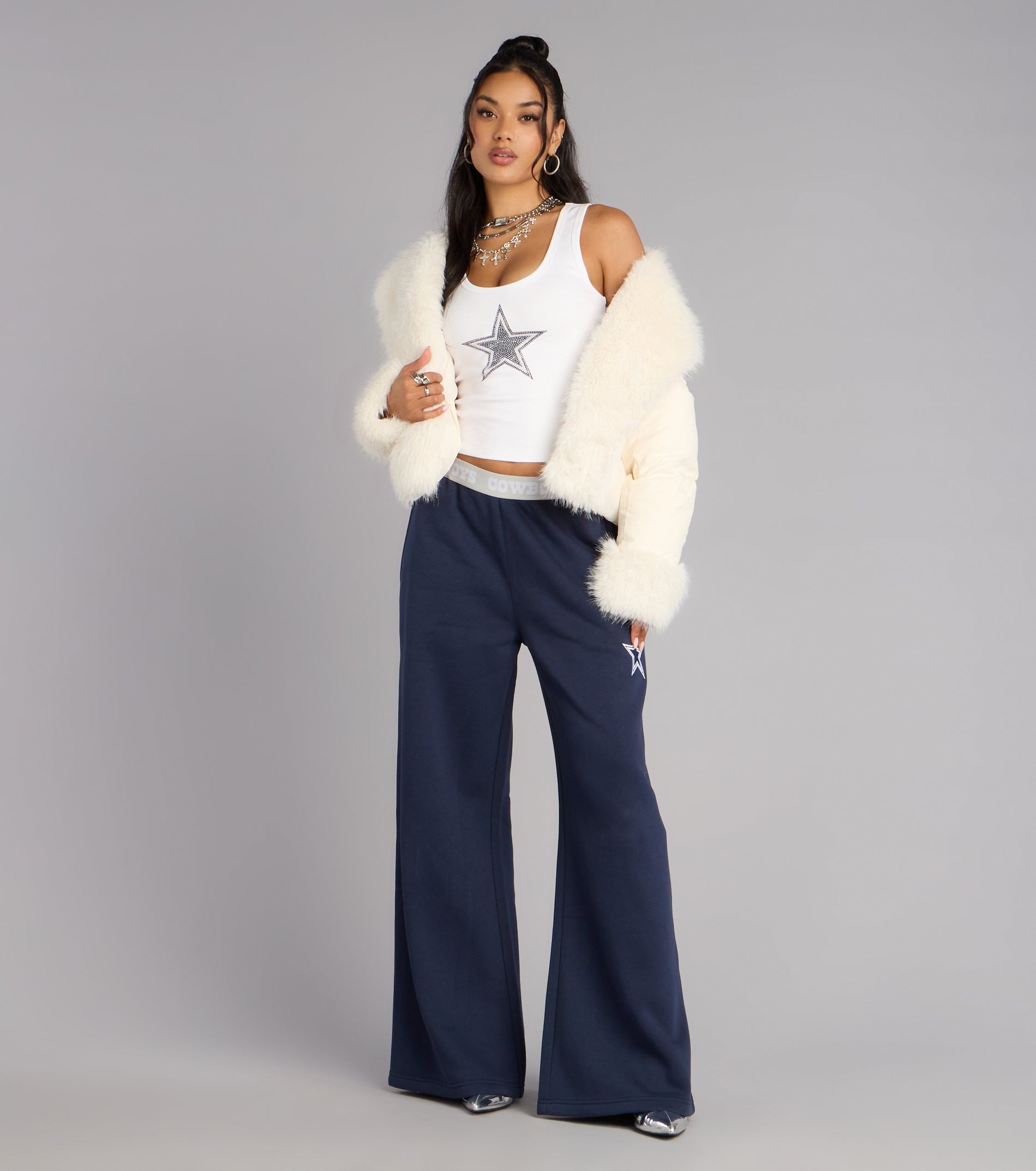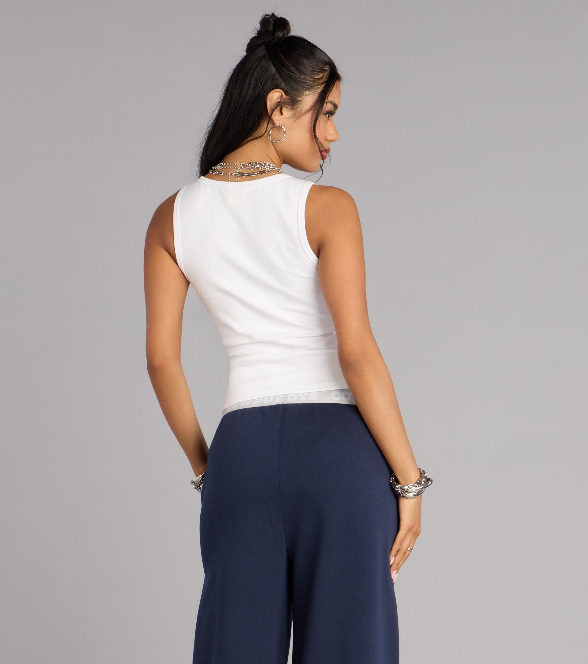 Sporty with a side of sparkle—this Cowboys tank top brings an effortless cool factor to every fan look. The clean scoop neckline and rhinestone star logo make it easy to dress up, down, or straight into game-day mode.