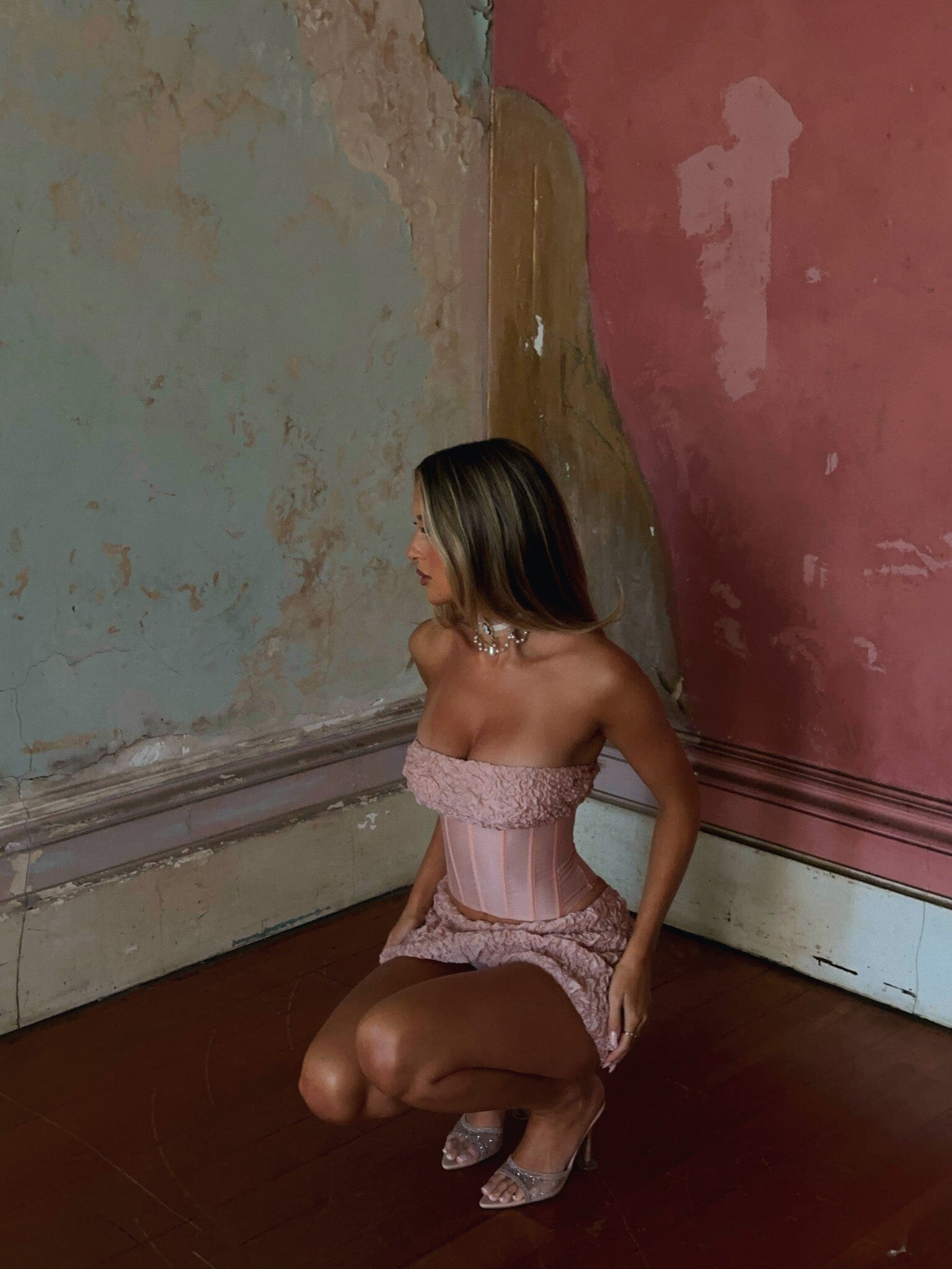 Embrace romantic elegance with our 'Zofia Mini Skirt' in Rose!